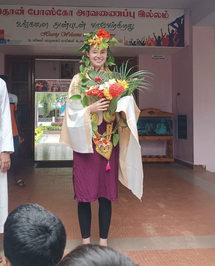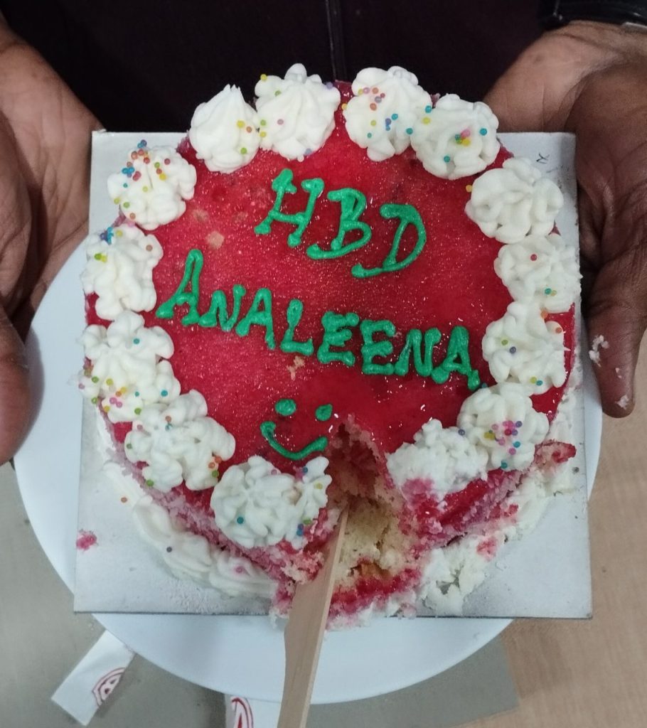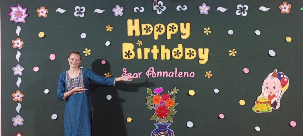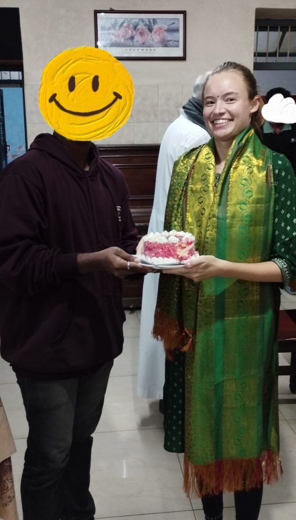 Am Nachmittag wurde dann noch extra ein Programm für mich veranstaltet. Die Fathers hielten eine Rede, die Small Boys und die ITI-Boys hatten einen Tanz einstudiert und eine Gruppe Jungs sang ein Lied für mich auf Tamil. Dann aber kam das Highlight und mein Kuchen wurde nach einem kleinen Schauspiel von paar Jungs auf die Bühne getragen. Nachdem ich auf die Bühne kam und die Kerzen nach einem kleinen Ständchen ausgepustet hatte (im Hintergrund lief einfach „Die Sonne geht auf“, ein bayrischer Marsch 😊), wurde ich auch schon mit Kuchen gefüttert (das ist in Indien so Tradition). Nach dem Programm bedankte ich mich bei allen. Es war ein wirklich toller und besonderer Tag für mich gewesen und ich werde ihn immer in Erinnerung haben! Danke euch, Jungs, Fathers, Brother und Marlene 😃