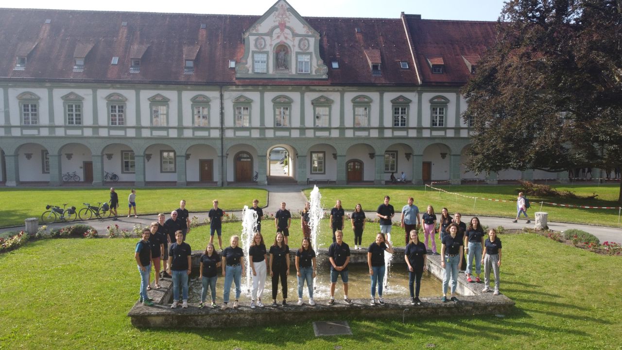 Auf einmal hieß es dann jedoch Pause machen und Niklas führte uns nach oben in den Klosterinnenhof. Dort bekam wir die 17 SDGs in Würfelform in die Hand gedrückt und stellten uns für ein Gruppenfoto unter den Arcaden auf. Der Grund für dieses Foto waren Reporter von der Süddeutschen Zeitung, der Merkur und der Bad Tölzer Lokalzeitung, welche einen Bericht über die Don Bosco Akademie schreiben wollen. Nach dem Gruppenfoto ist der Großteil von uns zurück in den Seminarraum gegangen und dort in den Kleingruppen weiterzuarbeiten. Zwei Volos und zwar Jakob und Sara durften jedoch noch zu einem Interview dortbleiben.