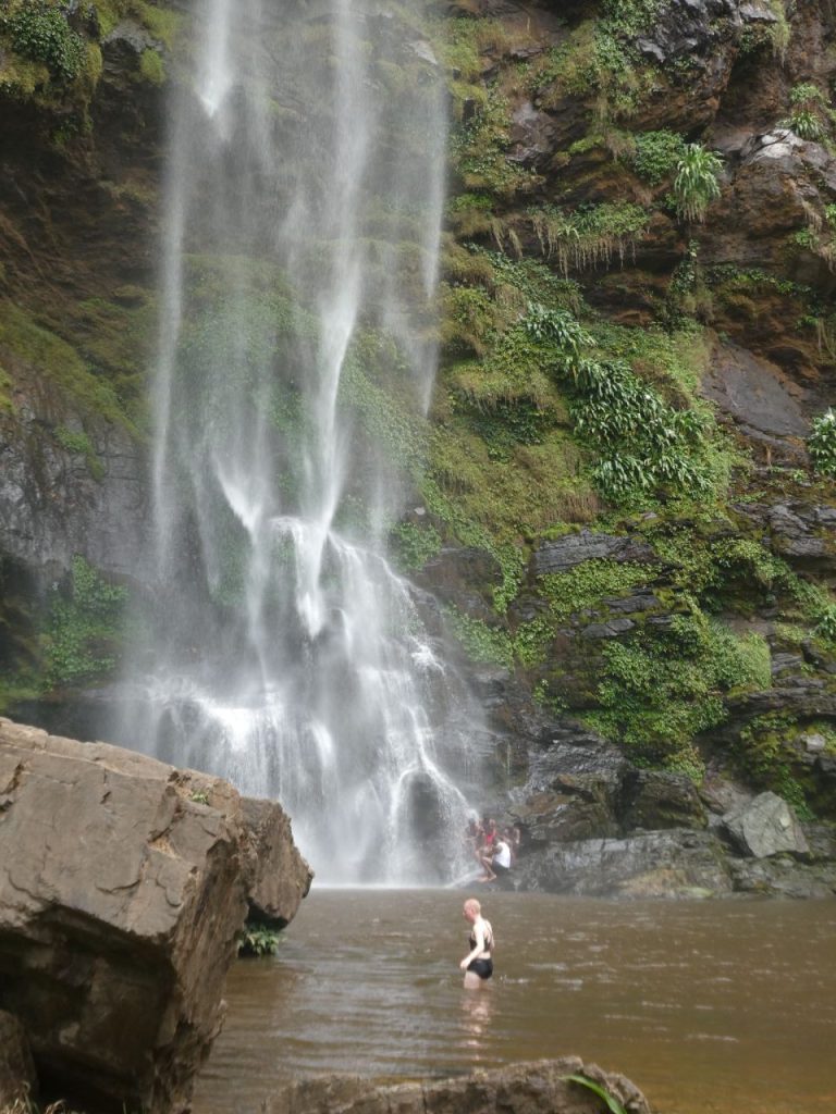 Danach ging es zu einer Höhle, in der eine riesige Flughundkolonie hauste und dann schließlich zu den Upper Waterfalls! In Null Komma nix waren wir im kühlen Nass. Diesmal war das Wasser tatsächlich kalt. Wir duschten unter dem Wasserfall, kletterten die Felsen hoch, spritzten uns gegenseitig nass… Kurzum, wir kosteten die Zeit in diesem Paradies in vollen Zügen aus.