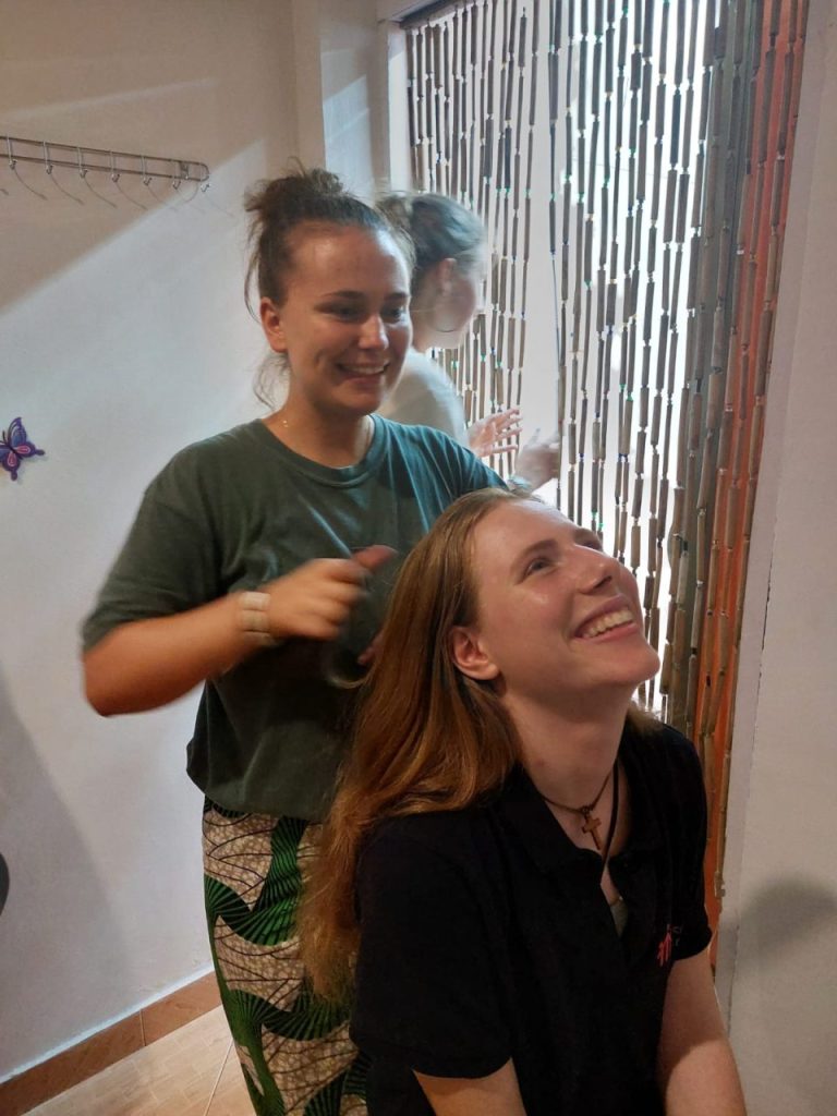 Da es unser letzter gemeinsamer Abend war, erinnerte ich Oscar daran, dass er noch sein Versprechen einlösen und mir die Haare komplett abrasieren musste. Es war wie schon bei der letzten Haar-Aktion ein Gruppenereignis, bei dem alle mitmachen wollten und sehr, sehr viel lachten. Das Endergebnis war ungewohnt, aber ich fand es voll cool. Und das Letzte, was ich noch mitbekam, bevor ich in meiner Hängematte einschlief (die anderen dachten, ich sei bereits eingeschlafen, weil ich die Augen geschlossen hatte), war, wie Quirin zu den anderen sagte: „Respekt an Christine, die Frau hat echt Eier!“