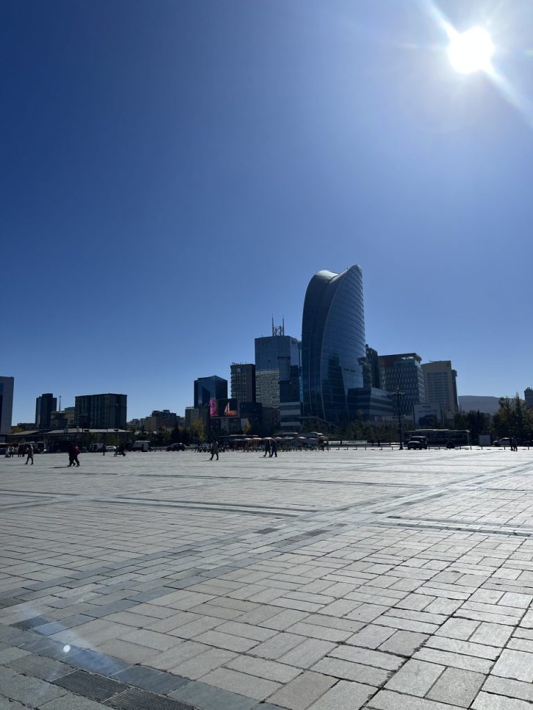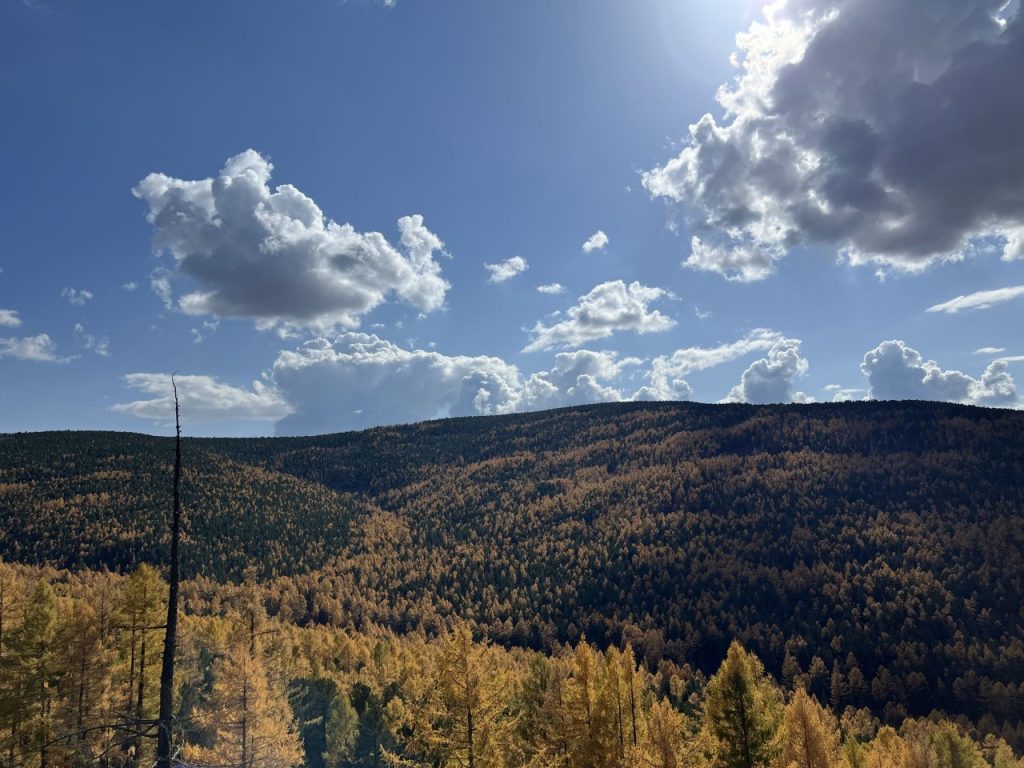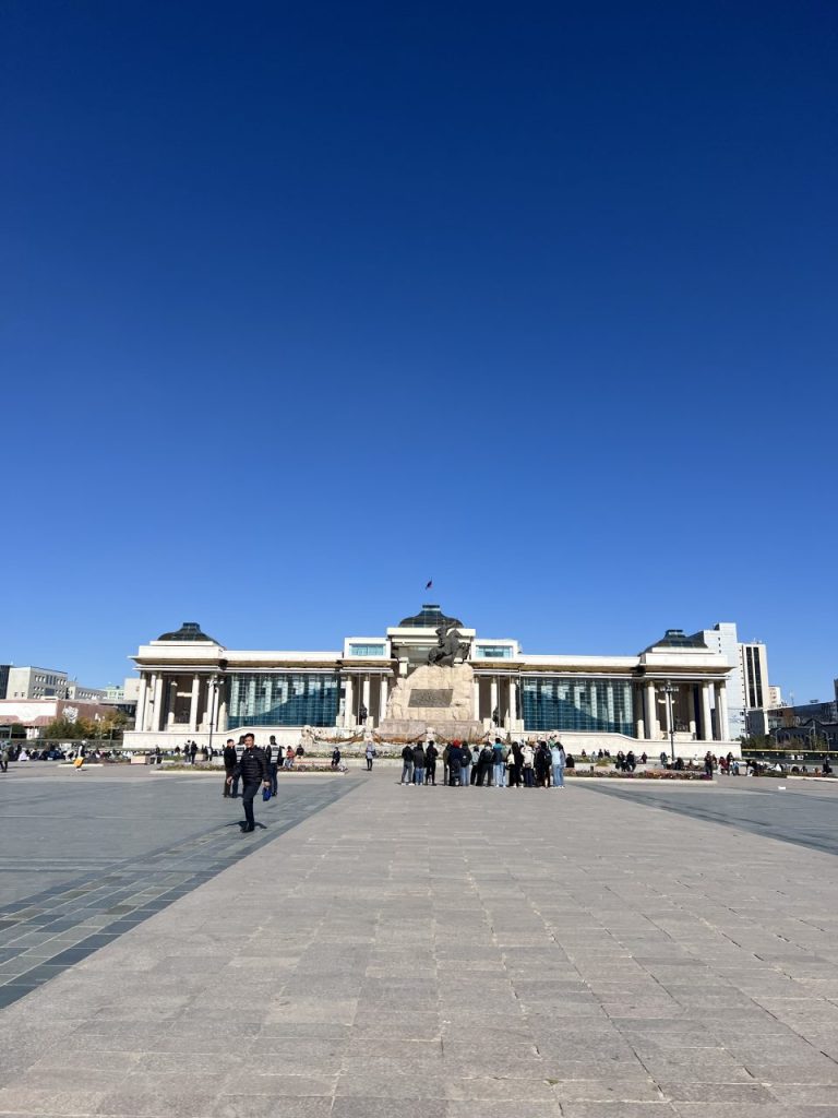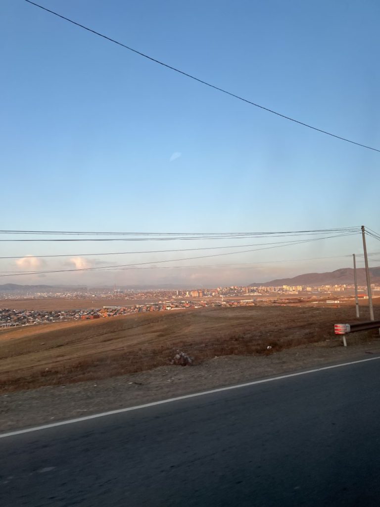 In unserer eigenen chaotischen Art und Weise haben wir begonnen uns hier irgendwie einzuleben. Wir versuchen, möglichst viel zu schlafen, da die ungewohnt trockene Luft und die Höhe, auf der wir uns befinden (1.350m), doch etwas an der Energie zerren. Wir haben schon einen kleinen Ausflug ins Stadtzentrum unternommen, welches mit gläsernen Hochhäusern und bunten Werbebildschirmen neben riesigen Regierungsgebäuden extrem bunt und modern wirkt. Gleichzeitig aber auch massig und imposant. Ganz anders wirken da die sogn. „Ger-Bezirke“ (Jurtenviertel), in denen hunderte von Menschen ohne ausreichende Infrastruktur und Hygiene, meist in einfachen Blechhütten oder Jurten leben. Oder die Landschaft, die uns außerhalb der Stadt in den Bergen begegnet: alles ist bedeckt mit Wäldern aus Bäumen, deren Blätter sich bereits orange-gelb gefärbt haben. Überall kreuzen freilaufende Kühe und Pferde den Weg. Sowohl auf dem Land, als auch in der Stadt entdeckt man immer wieder die weißen Spitzen der Jurten, die von der Bevölkerung immer noch viel genutzt werden.