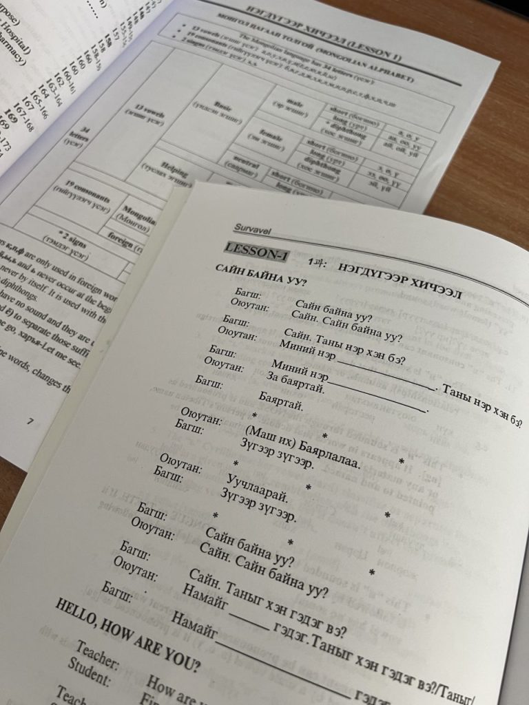 Nachdem wir dann bewiesen haben, dass wir mit Lebewesen umgehen können, durften wir auch mal die Kinder aus dem Heim (Caring Center) kennenlernen; – SPAAß! Dass wir immer noch nicht wirklich angefangen haben, mit den Kindern zu arbeiten, liegt daran, dass die Brüder erstmal einen Arbeitsplan für uns erstellen wollen und schauen, wo wir überall gebraucht werden. Und dann ist da noch das „kleine“ Problem mit der Sprache. Ich wusste ja, dass wir Mongolisch lernen müssen, aber war nicht ganz darauf vorbereitet, dass man ohne die Sprache wirklich GAR nicht weit kommt. Denn Englisch können hier die wenigsten. Und im Alltag reicht Zeichensprache leider irgendwann nicht mehr aus. Zum Glück wurde uns ganz schnell ein Mongolisch-Sprachkurs vermittelt und seit einer Woche haben wir jetzt jeden Tag 90 Minuten Onlineunterricht. Den haben wir auf jeden Fall nötig, denn unsere Sprachkenntnisse stehen noch ganz am Anfang. Aber es ist auch eine verdammt schwere Sprache, die uns schon so einiges Stöhnen gekostet hat. Vor allem im Zusammenhang mit der kyrillischen Schriftsprache, die wir auch neu lernen müssen. Aber im Ernst jetzt: warum gibt es einen Buchstaben für ein stummes „i“?