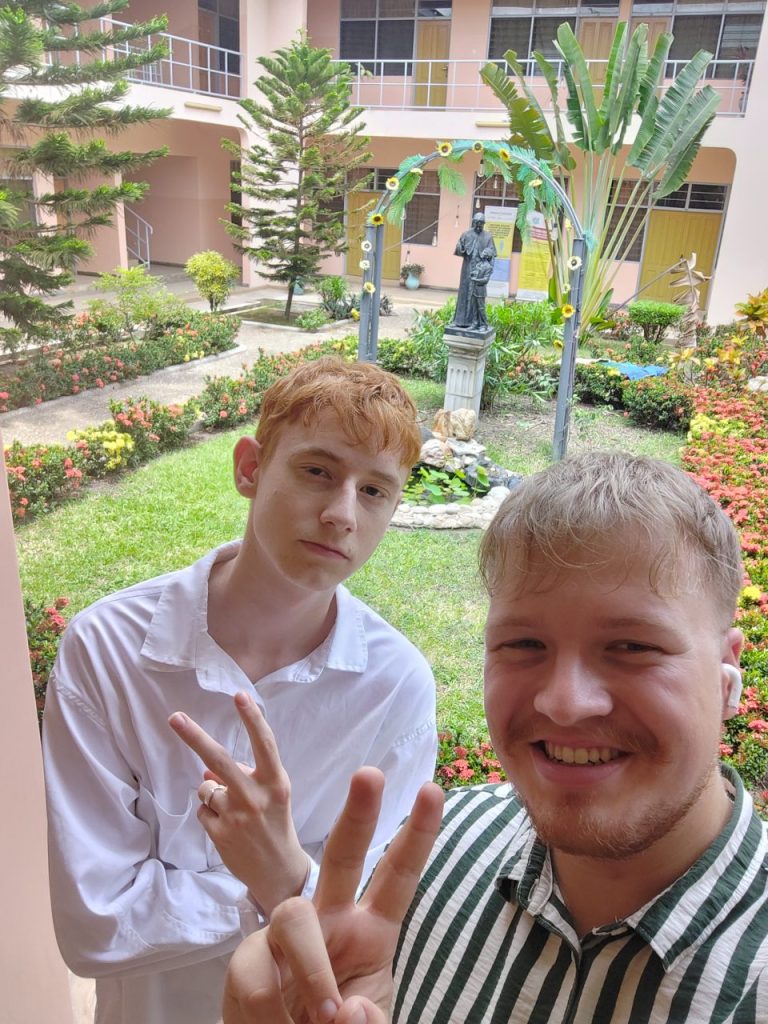 Rahel und ich wohnen im gleichen Haus mit vier Salesianern, mit denen wir bisher auch die meiste Zeit zusammen verbracht haben; einfach, weil man sich bei den gemeinsamen Gebetszeiten (morgens und abends) und Mahlzeiten nicht aus dem Weg gehen kann. Die Brüder haben uns direkt total herzlich in ihrer Gemeinschaft aufgenommen. In diesem Haus wird viel gelacht, am liebsten übereinander. Ob es Rahel ist, die als Vegetarierin angeblich das gleiche „Rabbit food“ (Hasenfutter) braucht, wie die Kaninchen, die Br. Andrew hält. Oder der indonesische Br. Werun, der chinesisches Sesamöl gekauft hatte. Als Br. Paul aus Hongkong nämlich die Inhaltsstoffe übersetzt hat, stellte sich heraus, dass es in Wirklichkeit nur herkömmliches Bratöl ist, das nur Sesamaroma besitzt.