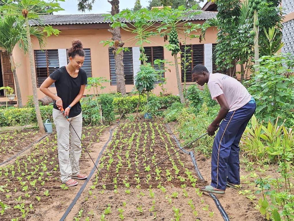 Christine hat mich bereits vorgewarnt, dass das Frühstück unserem sehr ähnlich ist, sodass ich wenig überrascht war, als morgens Kakao, Baguette und für mich als Gast zusätzlich Wurst und Käse auf dem Tisch standen. Nach dem Frühstück ging jeder seinem Aufgabenbereich nach, wie etwa Arbeit in der Küche, in der Kapelle, oder auch im Garten, wo ich mithalf Salat einzupflanzen. Mittags hörte ich den Jungs beim Einüben der Lieder für die morgige Messe zu und fand es zutiefst schade, diese nicht mit ihnen feiern zu können.  Das tägliche Rosenkranzgebet leitete zum Mittagessen über, bei dem mir einige Jungs erzählten, dass ihre Begeisterung und Leidenschaft für Arbeit mit Kindern sie dazu bewegte, sich letztlich für den Don Bosco Orden zu entscheiden.