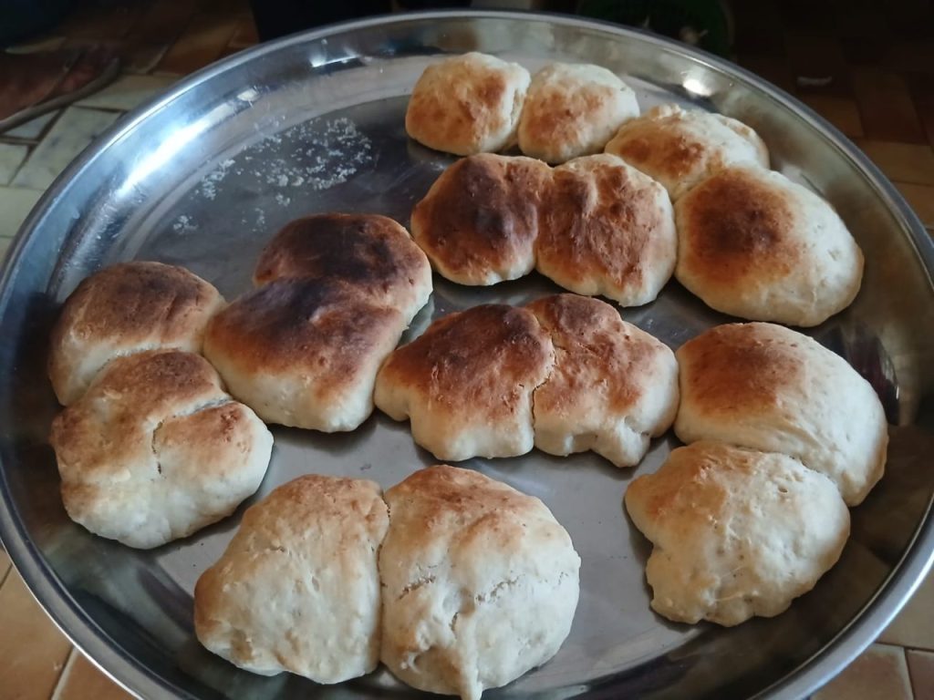 Diese Freude kam spätestens am Höhepunkt des Abends bei den Kindern an, als wir zum Schluss die Martinsbrötchen verteilten, für die Christine und ich den ganzen Tag über in der Küche gestanden waren (und großzügig Streichhölzer verwendeten, bis wir verstanden haben, wie der Gasofen funktioniert). Am Ende waren es über 85 Brötchen. Diese verteilten wir, indem wir jeweils 2 Kinder feierlich ein Brot überreichten, das sie vor allen anderen an der Bruchstelle in der Mitte teilten. Als der offizielle Teil vorbei war und noch ein paar Brötchen für die Älteren gerettet wurden, die noch nicht da waren, verbrachten wir den restlichen Abend damit, mit den Kindern zu singen und zu tanzen. Um 21 Uhr fiel uns dann auf, dass alle vor lauter gute Laune ihren Hunger vergessen hatten, sodass sie eine Stunde später aßen als gewohnt. Das war es aber auf jeden Fall wert!