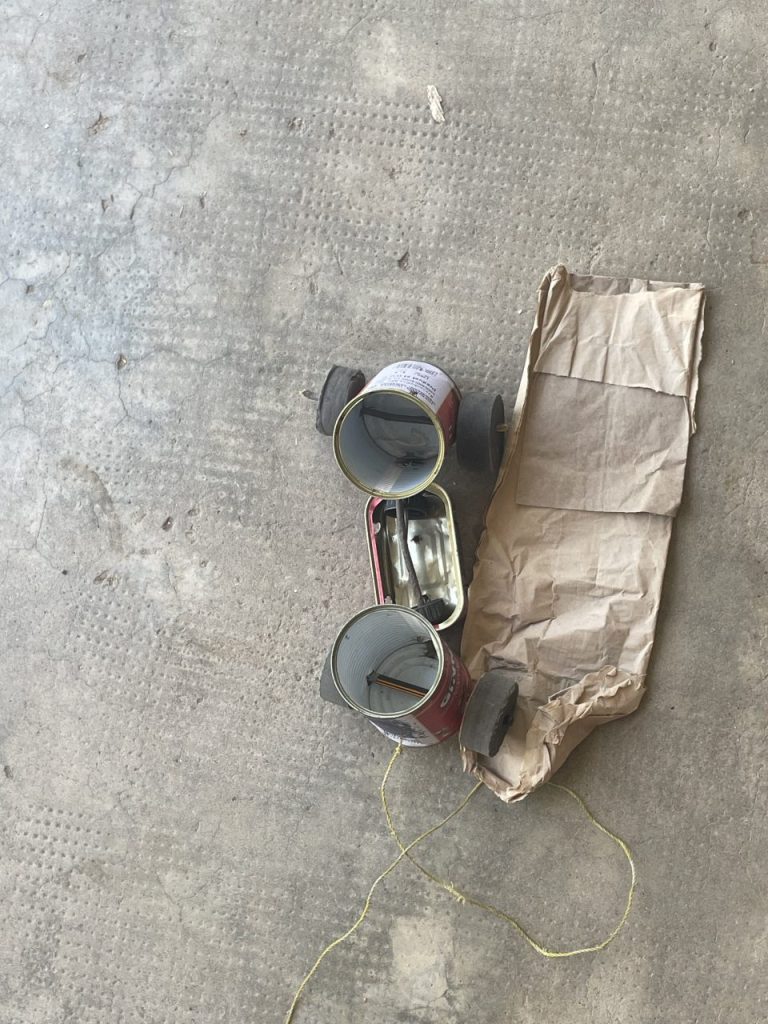 Die Kinder sind aber nicht nur unglaublich sportlich, sondern auch erfinderisch. Christine und ich konnten es nicht glauben, als wir gesehen haben, dass sie neben Autos aus Dosen auch Kreisel und funktionierende Mikros aus nichts anderem als zerschnittenen Plastikflaschen, Netzen und Lollistielen gebastelt haben.