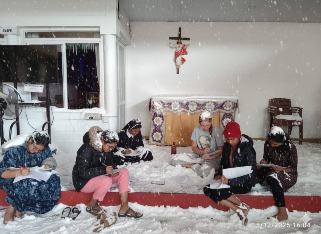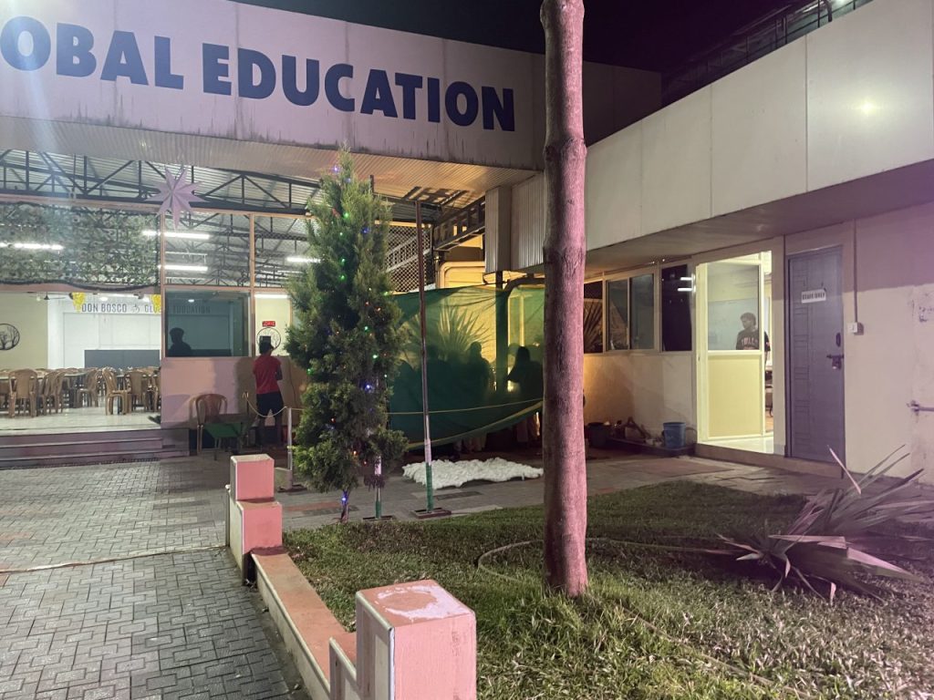 Die typische Weihmachtsstimmung hat sich trotzdem noch nicht so wirklich eingestellt, was vielleicht auch an den 30Grad liegt, die es weiterhin jeden Tag hat. Dementsprechend hat die verfrühte Weihnachtsfeier in unserer Einrichtung auch auf dem Hof und dem neuen Basketballfeld stattgefunden. In unserem Projekt leben zurzeit circa 200 SchülerInnen, 10 LehrerInnen, eine Sister und vier Fathers. Die Sprachschule ist eine von vielen, wo innerhalb von 10 Monaten Deutsch so weit gelernt wird, dass die Telc (oder Goethe) B2 Prüfung bestanden werden kann. Die Tage sind deshalb sehr gut strukturiert, um nicht zu sagen bis auf die Minute genau durchgetaktet. Morgens nach der Messe und dem Frühstück geht es los mit drei Stunden Unterricht, dann kommt das gemeinsame Mittagessen und bis drei Uhr ist Zeit um sich um sein Zimmer, Wäsche und andere Dinge zu kümmern. Vor dem Tea ist dann nocheinmal Hausaufgaben Zeit und auch vor und nach dem Abendessen gibt es jeweils noch einmal Study Time.
