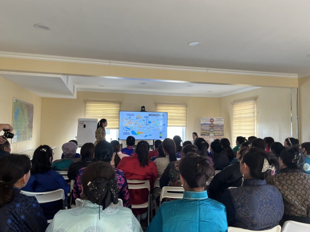 Am 8. März fand kein Unterricht statt, weil in der ganzen Mongolei der Frauentag gefeiert wurde und zu diese Anlass die Frauen aus dem „naheliegenden“ Dorf ins Camp eingeladen wurden. Am Nachmittag wurden in Vorträgen und Präsentationen das Camp und die Arbeit der Ranger vorgestellt. Der Nationalpark ist ja noch relativ jung und wird erst so langsam von Touristen wahrgenommen. Mit der Veranstaltung sollten die Einheimischen eingeladen werden, am Ausbau des Projekts teilzunehmen.