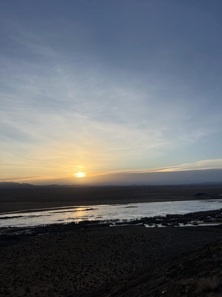 Am letzten Tag sind wir früh morgens auf einen naheliegenden liegenden Berg gestiegen, um den Sonnenaufgang zu sehen. Von dort aus konnte man tatsächlich noch weiter ins Land und den Fluss hinunter gucken und wäre es nicht so kalt gewesen, hätte ich stundenlang dort oben bleiben können.