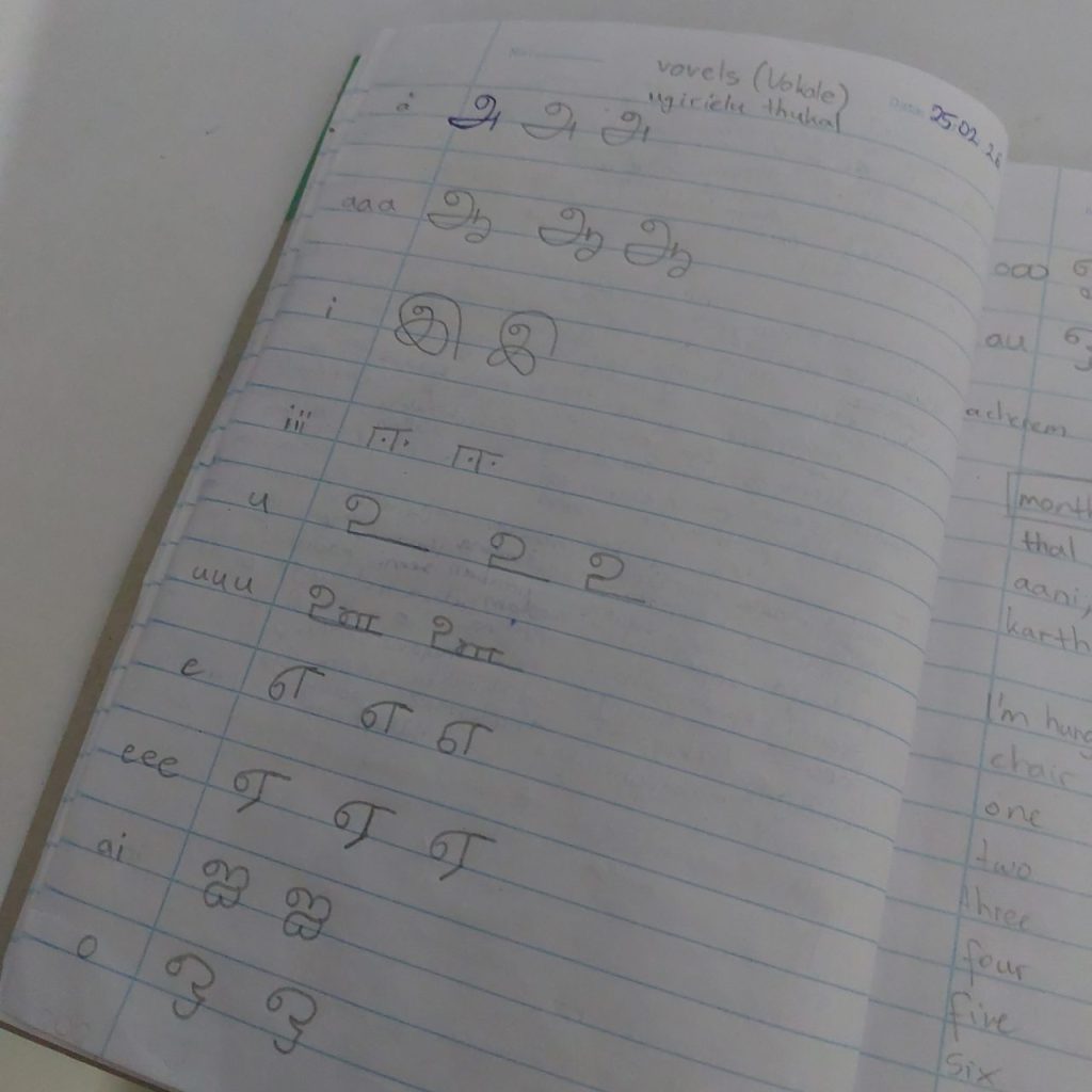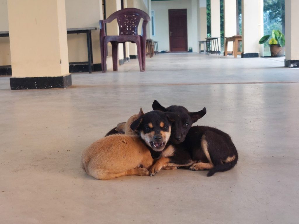In unserer Freizeit bereiten wir den Unterricht vor, spielen mit den vielen Tieren hier (4 Welpen, zwei erwachsene Hunde und 2 Katzen) oder lernen Tamil, was echt nicht so einfach ist, weil es sich signifikant von europäischen Sprachen unterscheidet. Vor allem die Schrift ist so kompliziert, es gibt 247 statt 26 Buchstaben im Alphabet und die Aussprache unterscheidet sich sehr von der Schriftsprache. Wir haben eine Lehrerin (von der English School), die bis jetzt viel fordert, aber super lieb ist.