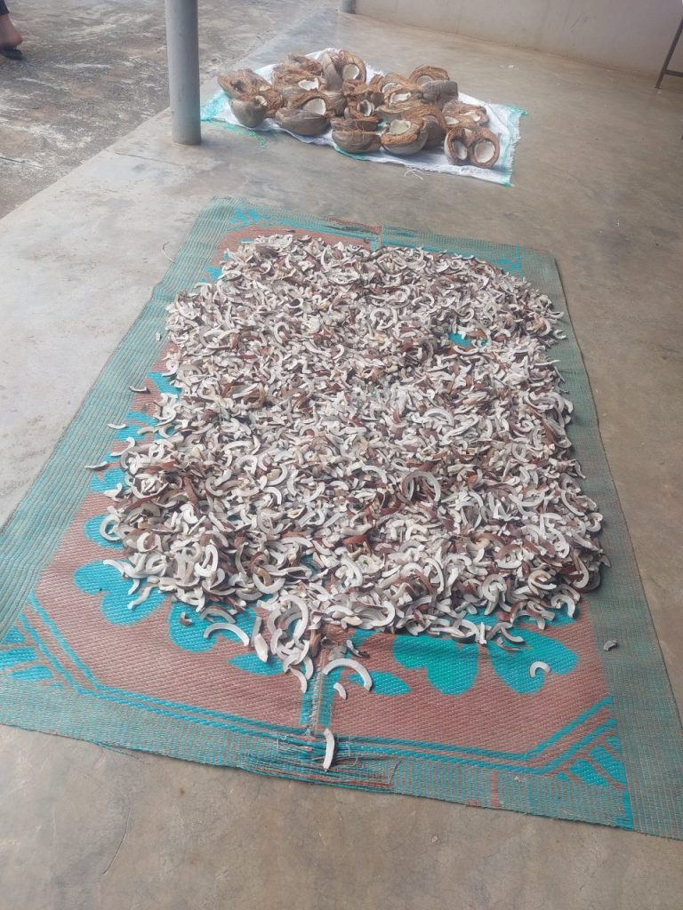 nach dem Trocknen stellen die Sisters & Girls Öl aus den Kokosnüssen her