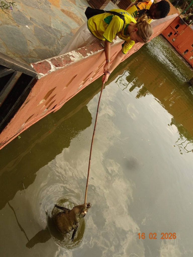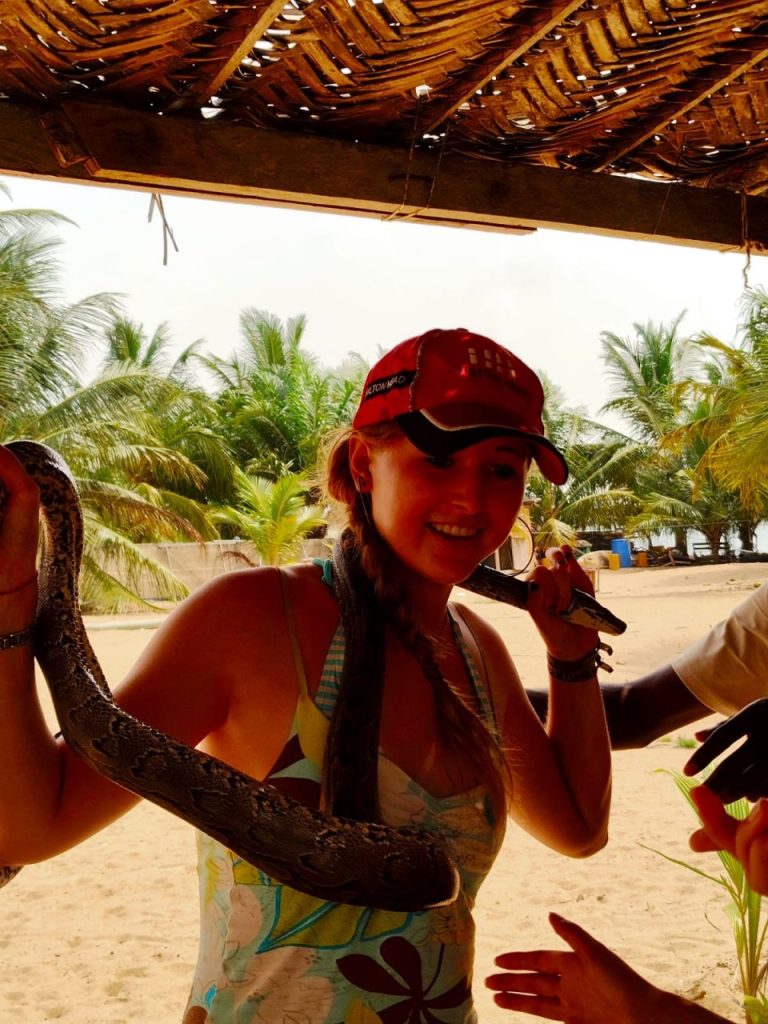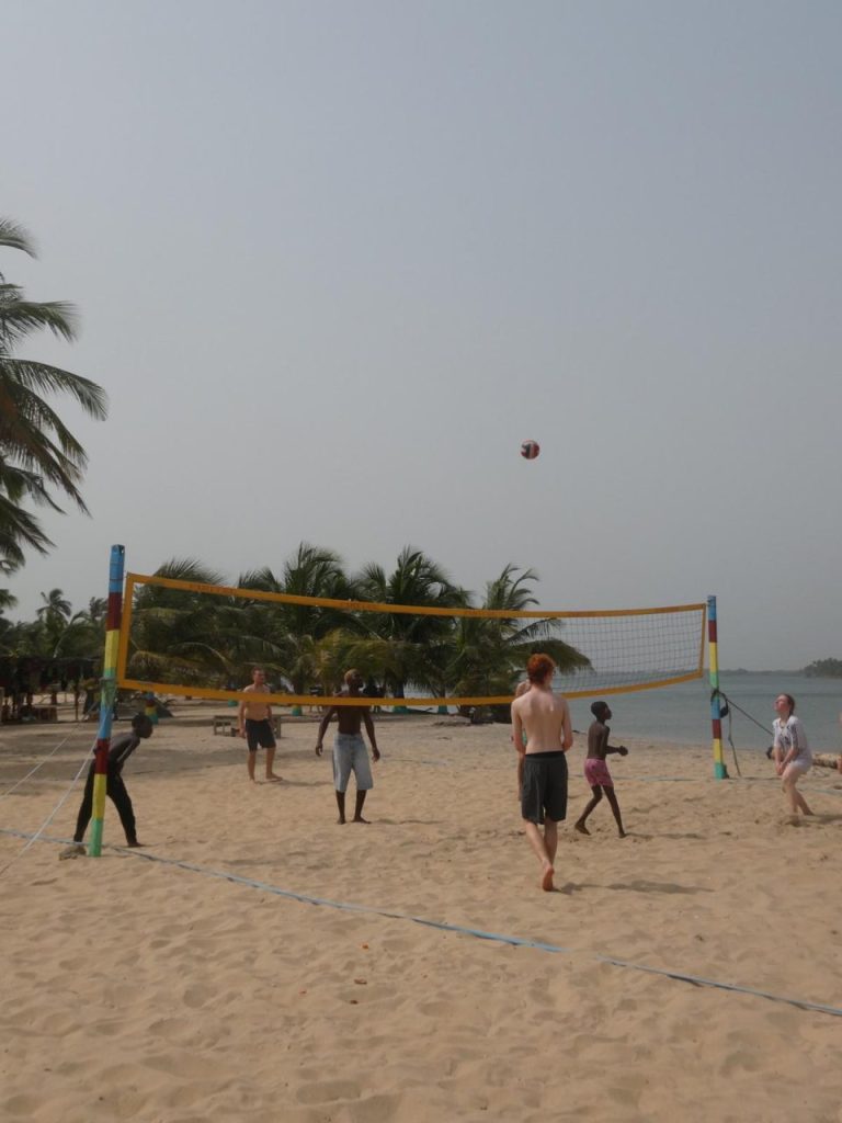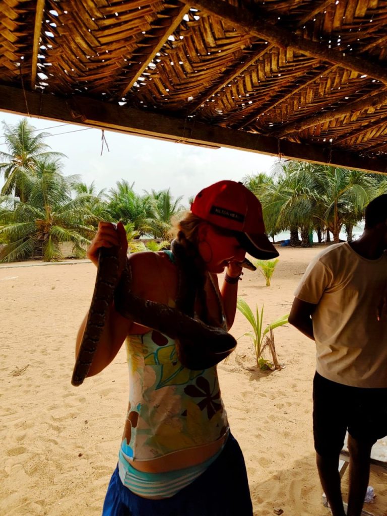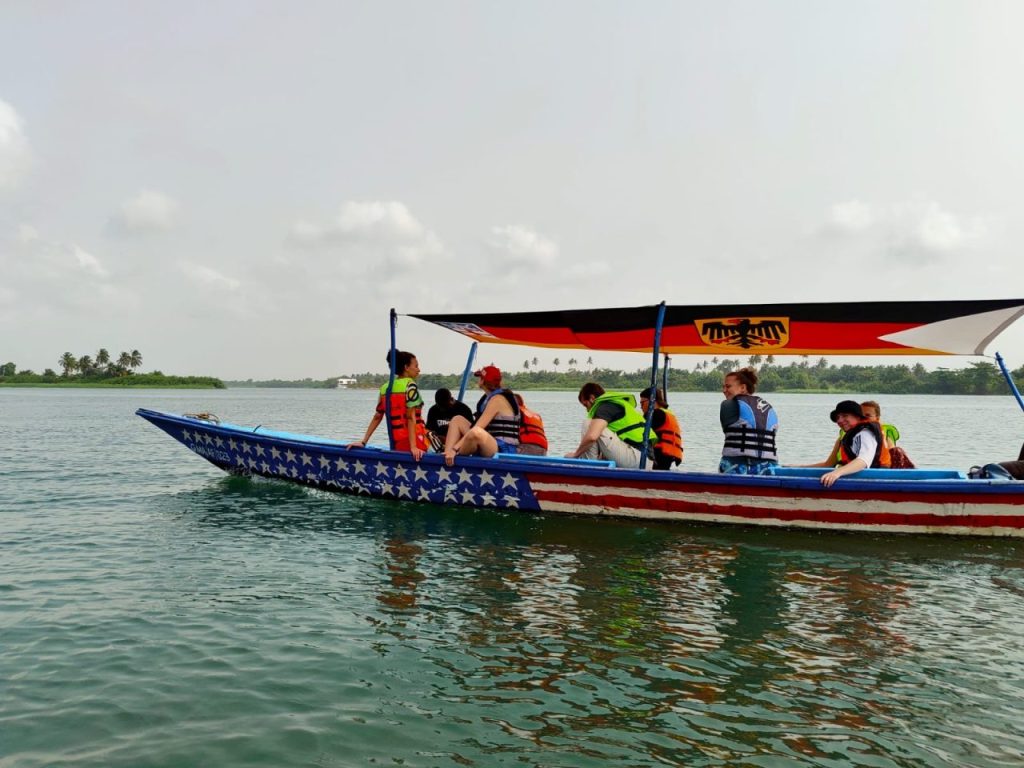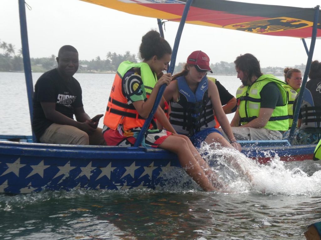 Das Highlight war aber natürlich, wie wahrscheinlich von allen, der Ausflug am Donnerstag nach Ada. Dort haben wir eine Bootsfahrt über den Volta River gemacht. Mehrere Male hielten wir auf verschiedenen Inseln an. So zum Beispiel auf Crocodile Island, wo wir nicht nur Krokodile halten durften, sondern auch Schlangen, Affen und andere Tiere sahen. Auf einer anderen Insel lernten wir etwas über Schnapsherstellung, wieder woanders etwas über Fischfang. Unsere Fahrt endete an einem Strand, an dem wir den restlichen Nachmittag verbrachten. Unermüdlich spielten wir Volleyball, badeten im Wasser und aßen alle gemeinsam. Ein bisschen wie eine Klassenfahrt. Oder eher ein Familienurlaub.