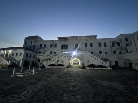 „Ursprünglich in den 1650er Jahren von Schweden erbaut, ging Cape Coast Castle bis in die 1660er Jahre in dänischen, niederländischen und schließlich englischen Besitz über. In den ersten Jahrzehnten des Schlosses drehte sich der Handel um Gold, Holz und Textilien, bevor englische Händler begannen, in großem Umfang afrikanische Sklaven zu verschleppen. […] Im Laufe des 18. Jahrhunderts bestand der Großteil des Handels von Cape Coast Castle aus afrikanischen Gefangenen, die nach Amerika verschleppt wurden. Nachdem Großbritannien den Sklavenhandel 1807 offiziell abgeschafft hatte , wurde die Burg zu einem Bildungs- und Verwaltungszentrum.“ (https://slaveryandremembrance-org.translate.goog/articles/article/?id=A0103&_x_tr_sl=en&_x_tr_tl=de&_x_tr_hl=de&_x_tr_pto=rq)