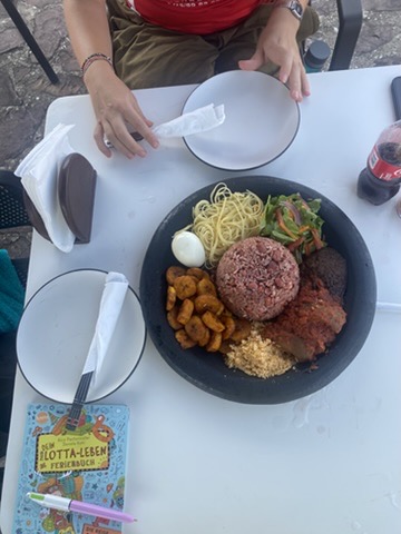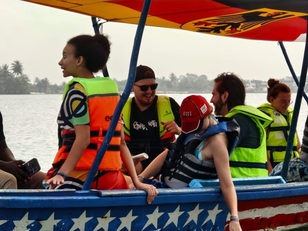 Die anderen Volos sind dann noch weiter in die Volta-Region in den Urlaub gefahren. Doch da meinte Familie am nächsten Tag in Cotonou landete, war für mich die Ghana-Reise hier zu Ende. Als ich im Uber saß und zum Abschied winkte, lief leise das Lied „Wavin‘ Flag“ aus dem Radio. Unser Seminar-Song, den wir beim Karaoke die ganze Zeit gesungen hatten. Als wüsste das Radio, dass ich noch gerne mit den anderen mitgefahren wäre.