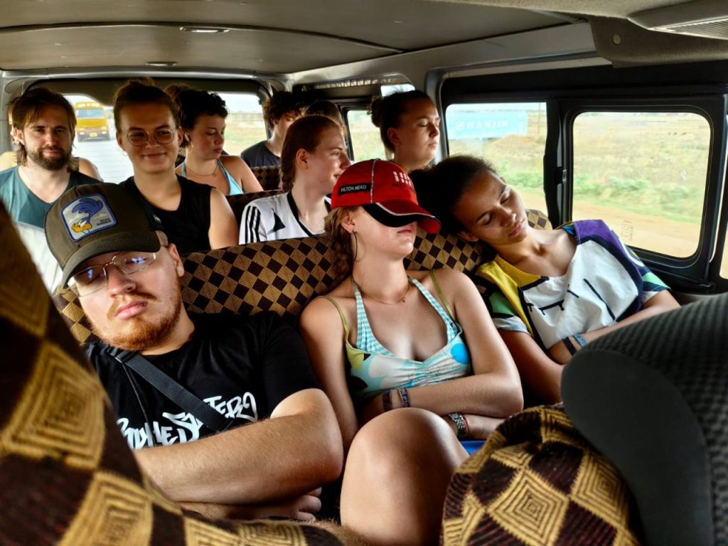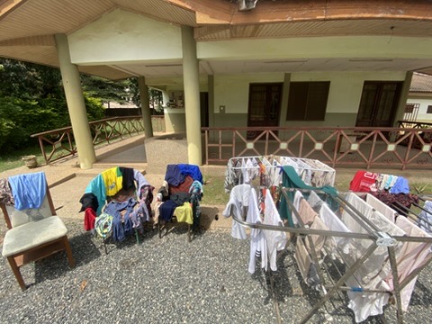 Zum unserem Glück war Quirin, einer der DonBosco-Freiwilligen aus Ghana, gerade zufällig mit zwei deutschen Freunden in Accra und bot uns für die Nacht den Boden seines Airbnbs an (Danke nochmal, Quirin, du bist mein Retter!! 🫂🫂🫂).